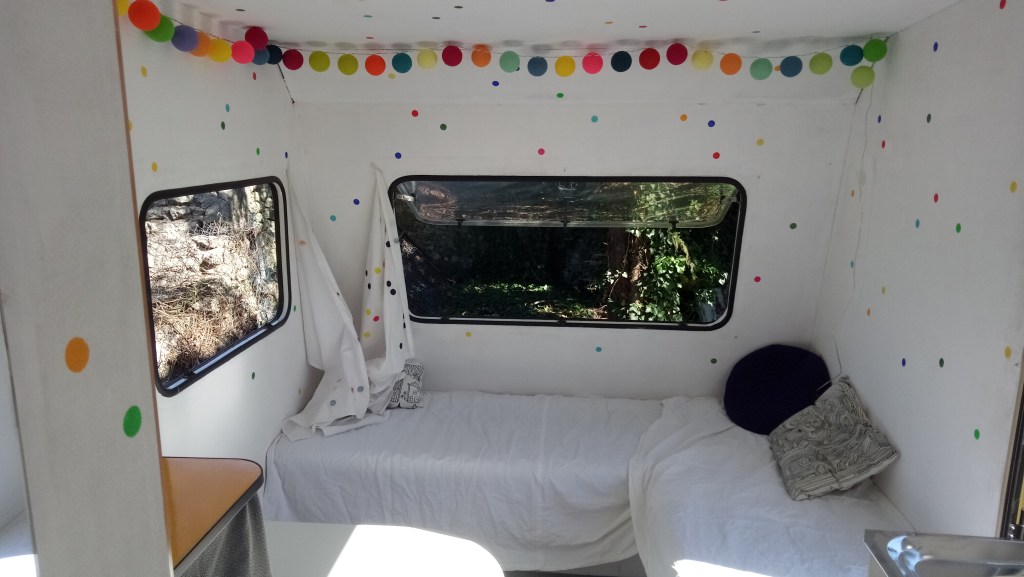 Pendant les travaux, je vivais sur mon terrain, dans une caravane. C’était très joyeux.