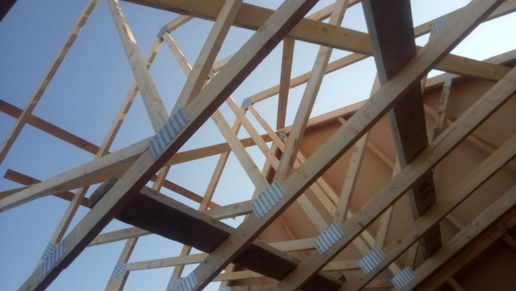 En 2021, j’ai débuté la construction de ma maison en ossature bois et isolation paille. J’ai dessiné les plans, conçu et dimensionné la structure, fait les ballots de paille, monté les murs, fait la plomberie, l’électricité, …