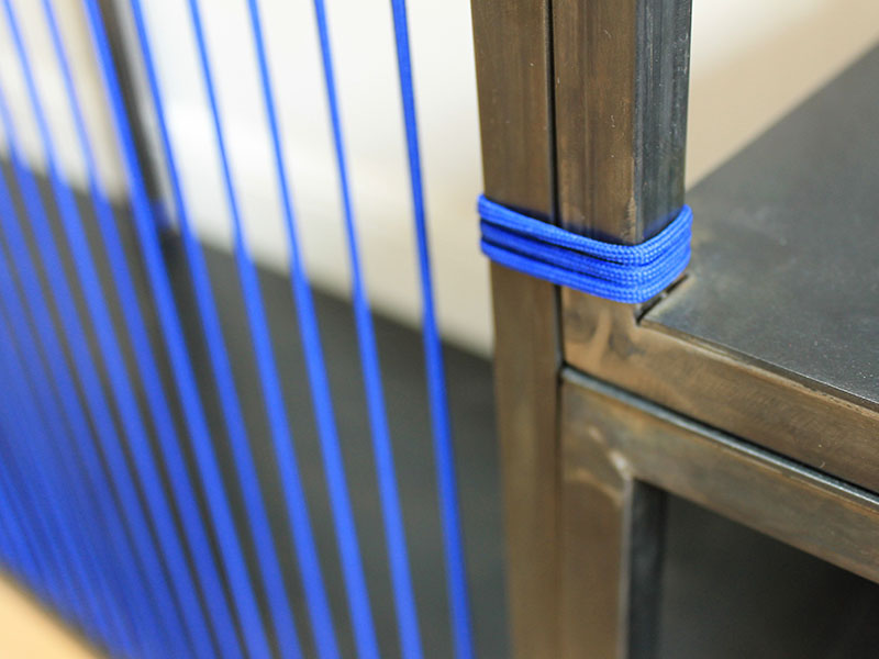 J’adore associer le métal et le fil pour créer un rythme ou pour assembler voire coudre ensemble différents éléments du meuble.
